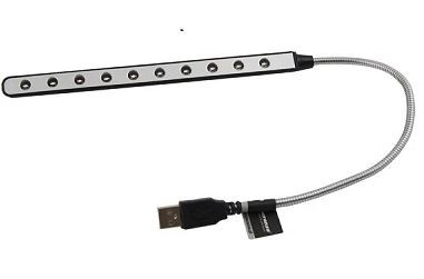 USB notebook lámpa, 10 LED, SIRIUSLED diódás lámpa használata notebookokhoz és asztali számítógépekhez. A lágy fény egyenletesen világítja meg a billentyűzetet vagy dokumentumokat az esti és az éjszakai munka során, valamint a nem megfelelő megvilágítású helyeken. Ideális az utazás közbeni munka támogatásához. A rugalmas kábel lehetővé teszi a lámpa bármilyen szögbeállítását. Alacsony energia fogyasztás. USB portra van szükség. Technikai paraméterek:LED szám: 10 Kábelhossz: 26cm Világítórész hossza: 20cm Áramellátás: 5V / 0,5A (USB-n keresztül) - USB konnektor szükséges