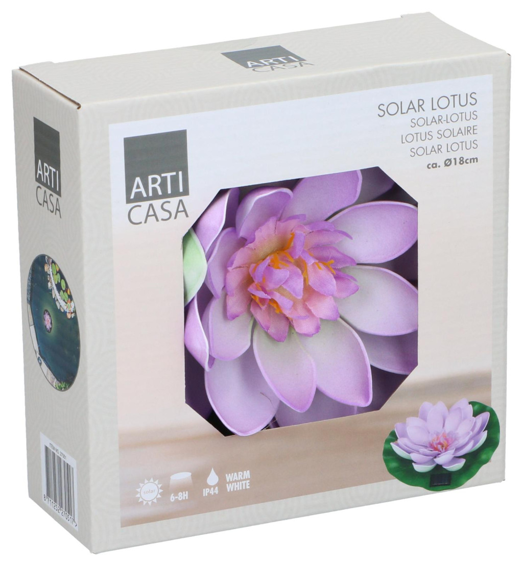 Dekoratív, napelemes lótuszlámpa kertbe vagy tóba. Napelemmel és AAA elemmel működik, hangulatvilágítást biztosít kültéri használatra.